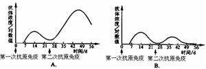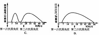 一般情况下,用抗原免疫机体,血清中抗体浓度会发生相应变化。如果在第二次免疫与第一次免疫所用的抗原相同且剂量相等,下列四图中能正确表示血清中抗体浓度变化的是