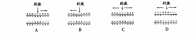 24.在一条离体神经纤维的中段施加电刺激,使其兴奋。如下图表示刺激时的膜内外电位变化和所产生的神经冲动传导方向(横向箭头表示传导方向)。其中正确的是