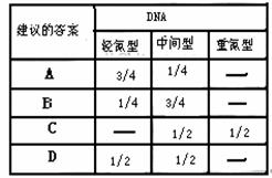 45. 把培养在含轻氮同位素(14N)环 境中 的 细菌转移到含重氮(15N)环境中培养相当于复制一次的时间,然后放回原来的环境中培养相当于连续复制两次的时间后,细菌DNA组 成分析(见右图)正确答案应为 A.A B.B C.C D.D