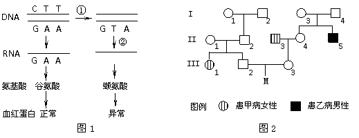 (2)若图1正常基因片段中的CTT突变成CTC,由此控制的生物性状是否会改变?(已知谷氨酸的密码子是GAA,GAG) ,原因是 。