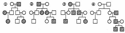23.以下家系图中属于常染色体隐性遗传、Y染色体遗传、X染色体上显性遗传、X染色体上隐性遗传的依次是 ( )