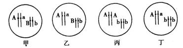 18.下图甲、乙、丙、丁表示的四株豌豆体细胞中的两对基因及其在染色体上的位置,下列分析不正确的是