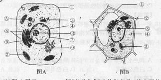 (5)图B中有三种细胞器未标上编号,请你用⑥、⑦、⑧ 分别给予标记,并写上它们的名称:[⑥] ,[⑦] , [⑧] .