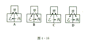 52.图4-16表示某植物相邻的3个细胞,其细胞液浓度依次为甲>乙>丙,正确表示它们之间水分子渗透方向的是: