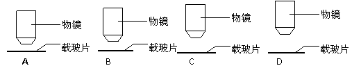 23、用显微镜的一个目镜分别与4个不同倍数的物镜组合来观察血细胞涂片。当成像清晰时,每一物镜与载玻片的距离如图所示。如果载玻片位置不变,用哪一物镜在一个视野中看到的细胞最少