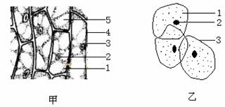 ⑴图甲是 细胞,图乙是 细胞,判断的理由是洋葱表皮细胞具有
