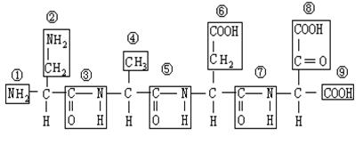(1)该图中表示组成氨基酸的氨基的是( ),表示羧基的是( ),表示肽键的是( ),该化合物是由( )种氨基酸构成的。