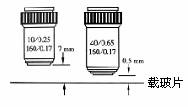 31.光学显微镜是中学生最常用的实验仪器。下图中7mm、0.5mm表示观察清楚时物镜与观察物之间的距离。请回答下列问题: