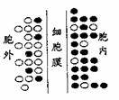 42、甲(〇)乙(●)两种物质在细胞膜两侧的分布情况如右图(颗粒的多少表示浓度的高