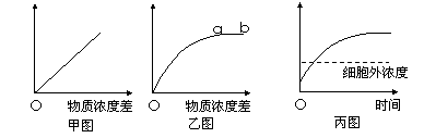 (1)甲图表示物质的运输速度与物质浓度差呈正比关系,说明 过程只受物质浓度的影响。