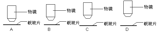 A.原核生物 B.真核生物 C.病毒 D.除病毒外的其他非细胞生物 9.用显微镜的一个目镜分别与4个不同倍数的物镜组合来观察血细胞涂片。当成像清晰 时,每一物镜与载玻片的距离如图所示。如果载玻片位置不变,用哪一物镜在一个视野中看到的细胞最少