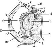 13. 右图是一个植物细胞模式图,1-10号分别指示对应的细 胞结构,以下相关说法错误的是 ( )
