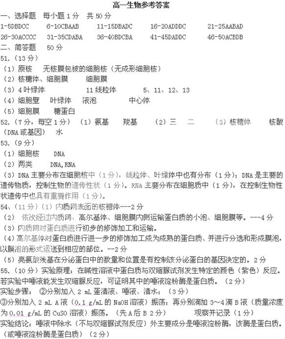 55. (10分) 现有双缩脲试剂B液(质量浓度为0.05 g/mL的CuSO4溶液)、双缩脲试剂A液(质量浓度为0.1 g/mL的NaOH溶液)、鸡蛋清水溶液(含蛋白质)、新鲜唾液(主要含唾液淀粉酶)、试管和必需的实验用品,请设计一个实验证明:“唾液中的唾液淀粉酶是蛋白质”。