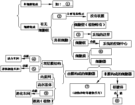 (18分)请根据所学知识,完成有关“生物体的结构”相关的概念图。