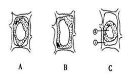 3、(6分)右图示处于不同生理状态的三个洋葱鳞叶表皮细胞,请回答: