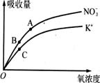 17.右图是胡萝卜在不同的含氧情况下从硝酸钾溶液中吸收K+ 和NO
