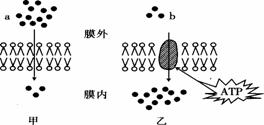 如图甲、乙表示小肠绒毛上皮细胞中的细胞膜对不同物质的转运(每种物质转运的方向由箭头表明,黑点的数量代表每种物质的浓度)。下列
