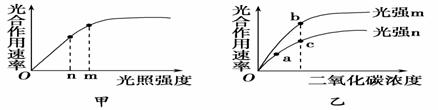 29、图甲表示A植物光合速率受光照强度影响的变化曲线。图乙表示A植物光合速率在不同光照强度环境条件下,光合速率受CO2浓度影响的变化曲线。a点与c点相比较,c点时叶肉细胞中C3的含量;b点与c点相比较,b点时叶肉细胞中C5的含量依次是( )