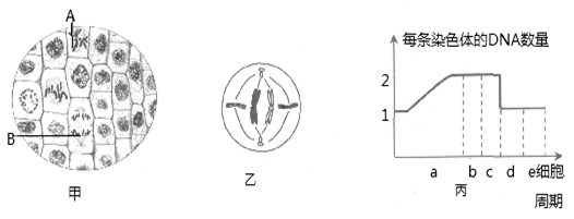 (3)甲图中A、B两个细胞分别对应于丙图的时期分别是 , (填字母)。