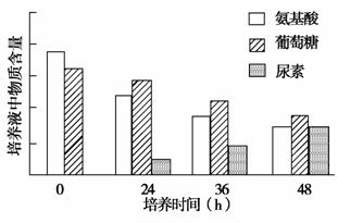(1)由图可知,随培养时间延长,培养液中葡萄糖和氨基酸含量________,尿素含量________。由于在原培养液中没有尿素,推测其是________________的产物。