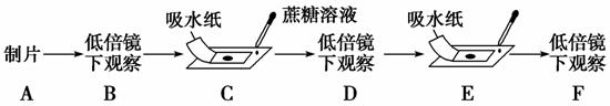 解析:选A。本题考查植物细胞的吸水与失水的实验探究。步骤B是在显微镜下观察液泡的大小和原生质层的位置。步骤C是进行质壁分离处理的实验操作,步骤E是进行质壁分离复原处理的实验操作。步骤D、F分别是观察质壁分离和质壁分离复原的现象,与步骤B观察的现象形成前后对照。