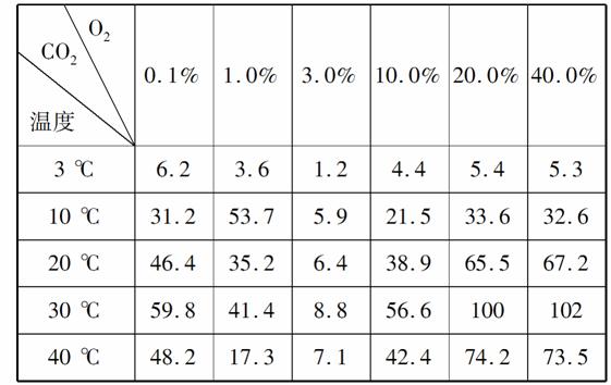 (2)研究人员在对数据分析时,发现在温度、O2含量分别为________的条件下所测数据最可能是错误的。