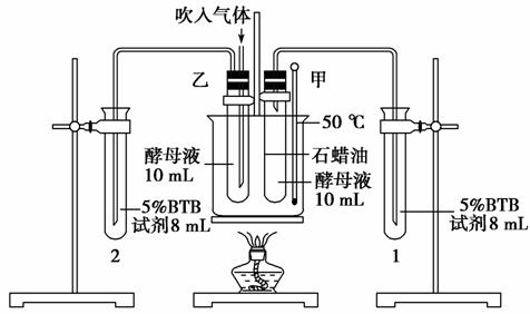 (2)观察1、2试管的颜色变化,一段时间后两个试管的实验现象是 。本实验中选用BTB试剂检测的代谢产物是 ,此外甲、乙试管中还分别有 (物质)生成。