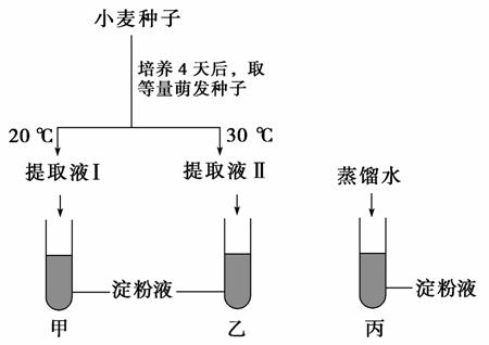 11.小麦种子萌发时产生淀粉酶,将淀粉水解为麦芽糖、葡萄糖等。小麦种子萌发的最适温度为30 ℃左右。取适量小麦种子在20 ℃和30 ℃培养箱中培养4天后,做如下处理:
