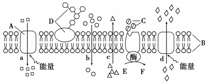 13.(2010年广东汕头模拟)下图表示某生物膜结构,图中A、B、C、D、E、F表示某些物质,a、b、c、d表示物质跨膜运输方式,请据图回答: