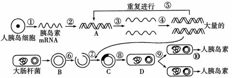 22.(10分)下图为基因工程技术生产人胰岛素的操作过程示意图,请据图回答: