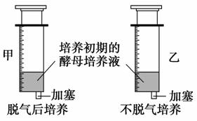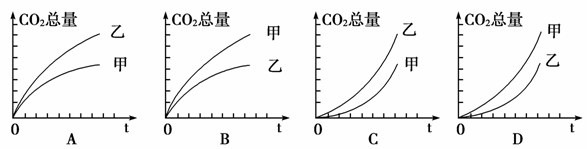 12.(2009年高考江苏卷)某小组为研究脱气对酵母菌在培养初期产气量的影响,进行了甲、乙2组实验,实验装置如右图所示,除图中实验处理不同外,其余条件相同。一段时间内产生CO2总量的变化趋势是( )