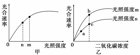 14.图甲表示某植物光合速率受光照强度影响的变化曲线。图乙表示某植物光合速率在不同光照强度环境条件下,光合速率受CO2浓度影响的变化曲线。a点与c点相比较,c点时叶肉细胞中C3的含量;b点与c点相比较,b点时叶肉细胞中C5的含量依次是( )