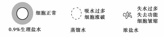 解析:选D。据图,盐浓度的大小能够改变红细胞的形态和功能。因此水分和无机盐对于维持细胞的形态和功能有重要作用。