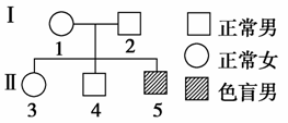 解析:选B。由题可推知:设控制色觉的基因为B、b,Ⅱ3的基因型为1/2XBXB、1/2XBXb,当基因型为XBXb时后代出现患者,若其与正常男性婚配,生有患病男孩的概率为1/2×1/2Xb×1/2Y=1/8XbY;Ⅱ4的基因型为XBY,而表现型正常的女性可能是携带者,后代有可能出现患者,若正常女性的基因型为XBXB,则后代不会出现患者。