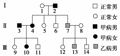 (3)假如Ⅲ10和Ⅲ13结婚,生育的孩子患甲病的概率是________,患乙病的概率是________,不患病的概率是________。