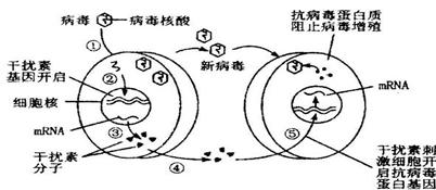 21、下图表示病毒进入人体后,机体细胞产生干扰素的过程及干扰素的作用机理。下列有关叙述正确的是