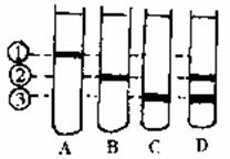 31.(8分)含有32P和31P的磷酸,两者化学性质几乎相同,都可参与DNA分子的组成,但32P比31P质量大。现将某哺乳动物的细胞放在含有31P的磷酸的培养基中,连续培养数代后得到G0代细胞。然后将G0代细胞移至含有32P磷酸的培养基中培养,经过第l、第2次细胞分裂后,分别得到G1、G2代细胞。再从G0、G1、G2代细胞中提取出DNA,经密度梯度离心后得到结果如下图。由于DNA分子质量不同,因此在离心管内的分布不同。若①、②、②分别表示轻、中、重三种DNA分子的位置,请回答:
