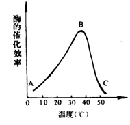 右图表示温度对酶的催化效率的影响。请根据此图回答下列问题