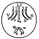 27.右图是果蝇的原始生殖细胞中染色体组成及其上基因的示意图。其中B(灰身)、b(黑身)、V(长翅)、v(残翅)、W(红眼)、w(白