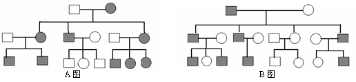以下A、B两图分别是甲、乙两遗传病在两不同家族中的遗传系谱图,分析回答: