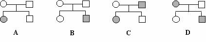 13.下列系谱图,哪个肯定是常染色体上隐性遗传病的系谱图: ( )