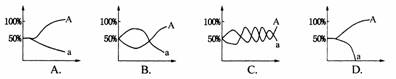 17.如果基因型为Aa的个体自交产生的后代在某一环境中的生存能力或竞争能力是AA=Aa>aa,则在长期的选择过程中,下列比较正确地表示A基因和a基因之间的比例变化的曲线是