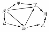 右图是某生态系统的食物网示意图,甲一庚代表不同的生物.箭头表示能量流动的方向和食物联系。下列叙述正确的是