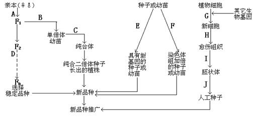 (3)图中G→…→J过程中涉及到的生物技术有 ,该育种方法与前面几种育种方法相比较,具有的优点是 。