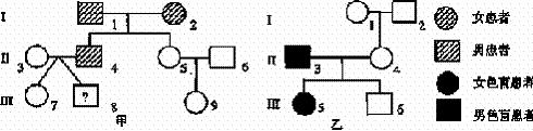 35. (11分)下图是两个遗传病系谱图,图甲中的甲病是乳光牙遗传病(A-a),图乙中的乙病是红绿色盲症(B-b)。请据图回答。