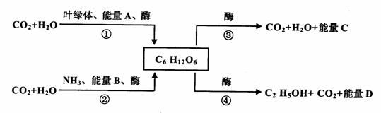 (9分)下面是发生在不同种类的生物体内的部分生理过程图解,据图回答:
