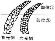某同学利用发生了向光弯曲的燕麦胚芽鞘,制作成切片并观察。他绘制了背光侧和向光侧的细胞形态示意图(如右图所示)。结合课本知识可得出的结论是...........( )