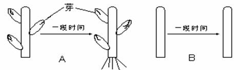23.下图中A、B为两插条扦插一段时间后的生长情况示意,其主要原因是........( )