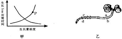 24.将植物横放,测量根和茎生长素浓度与其生长状况的关系如甲图所示,则曲线上P点最可能对应于乙图中的位置是.........................................( )