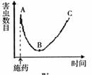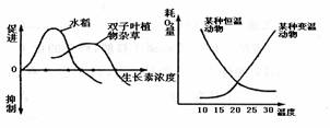 30.下列4图中的曲线分别表示:A图表示温度与酶的催化效率的关系,B图表示施药后害虫种群抗药个体数目的变化,C图表示一定浓度的生长素类似物可以除去水稻田中的双子叶植物杂草,D图表示环境温度与动物耗O2量的关系。正确的图是............( )